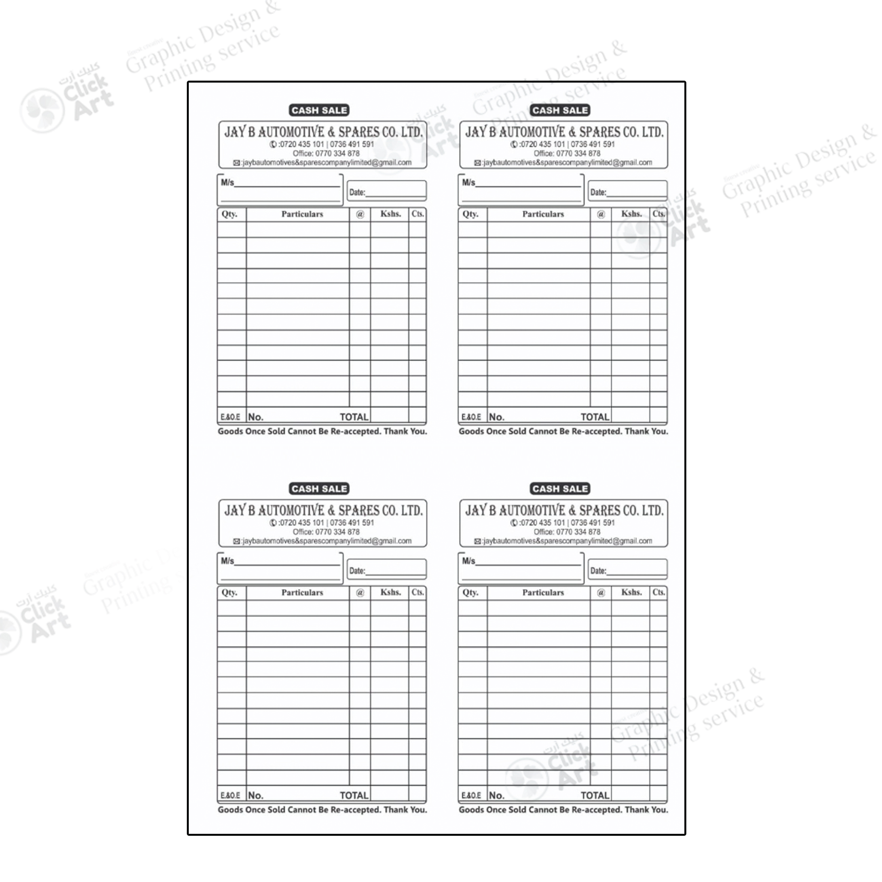 Contact us via WhatsApp or Email to start your bill book design with clickarts.store.