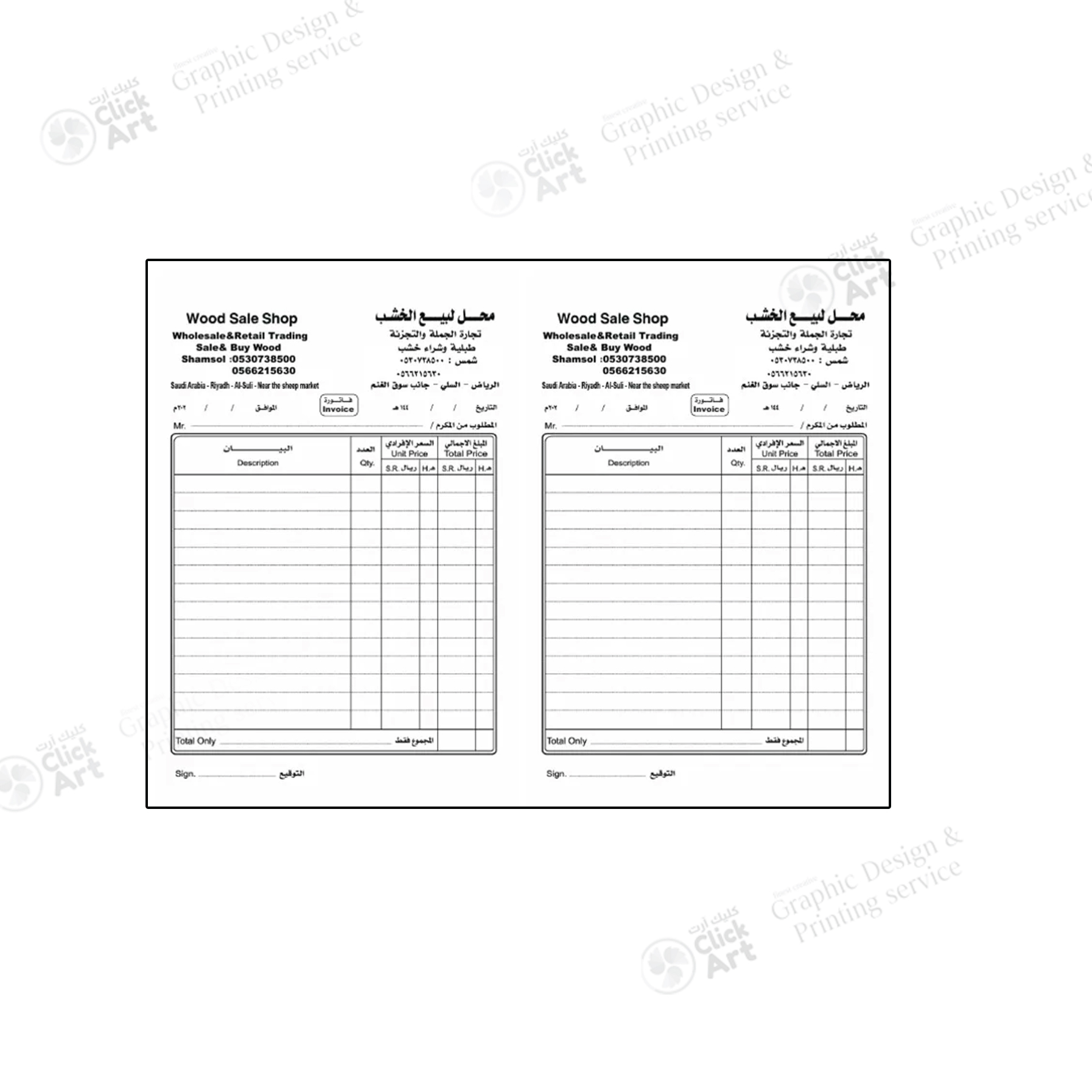 Printed on premium NCR carbonless paper, this bill book produces clear duplicate copies without carbon sheets. Each book is fully customizable with your company logo, contact details, TRN/VAT number, and website, turning every bill into a powerful branding and marketing tool.