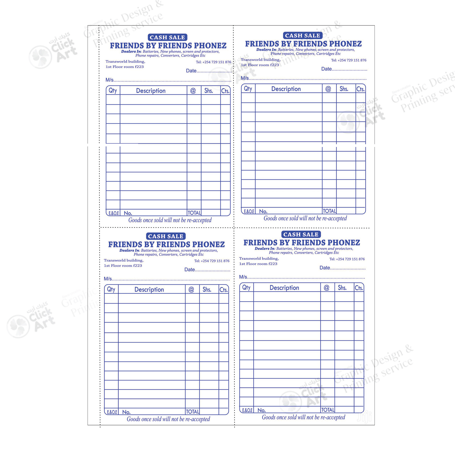 At clickarts.store, we provide complete design support for your 4-Up Bill Book (A4) to ensure a professional and print-ready finish. Our experienced design team works closely with you to create a layout that matches your business identity and billing needs.