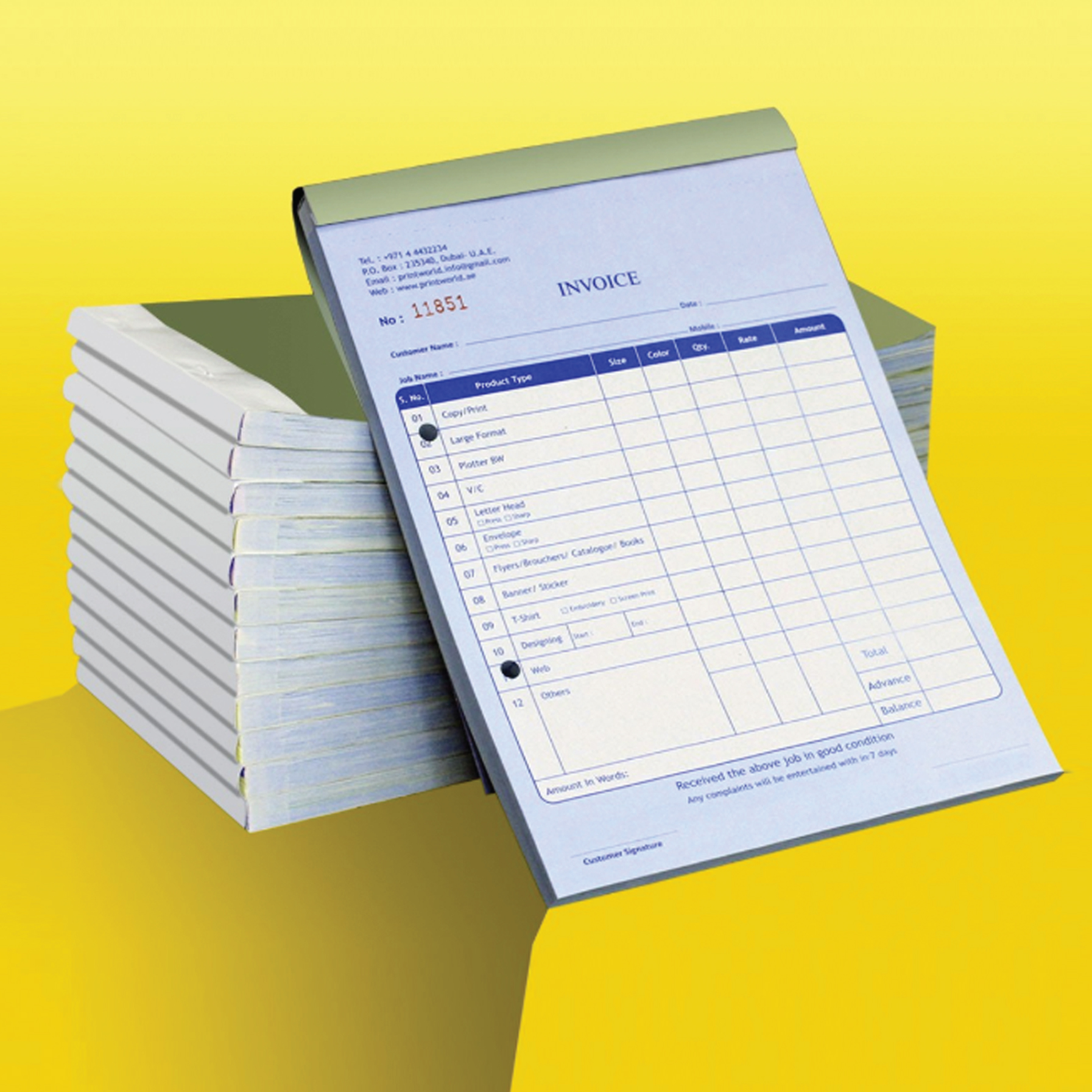 We accept any quantity, from small orders to bulk production, with reliable quality and fast turnaround. NCR Invoice Books are widely used across Oman for VAT-compliant billing and day-to-day business documentation.